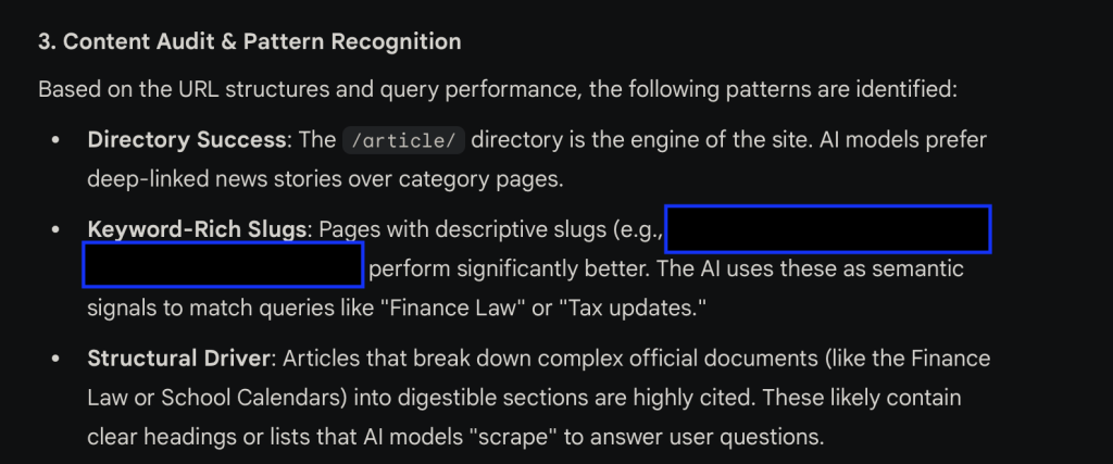 Un expert SEO, Rüdiger Dalchow, Head of Organic Strategy chez Improove: a créé un modèle sur Gemini capable d’analyser automatiquement les données issues de Bing Webmaster Tools et de produire des insights en quelques secondes.