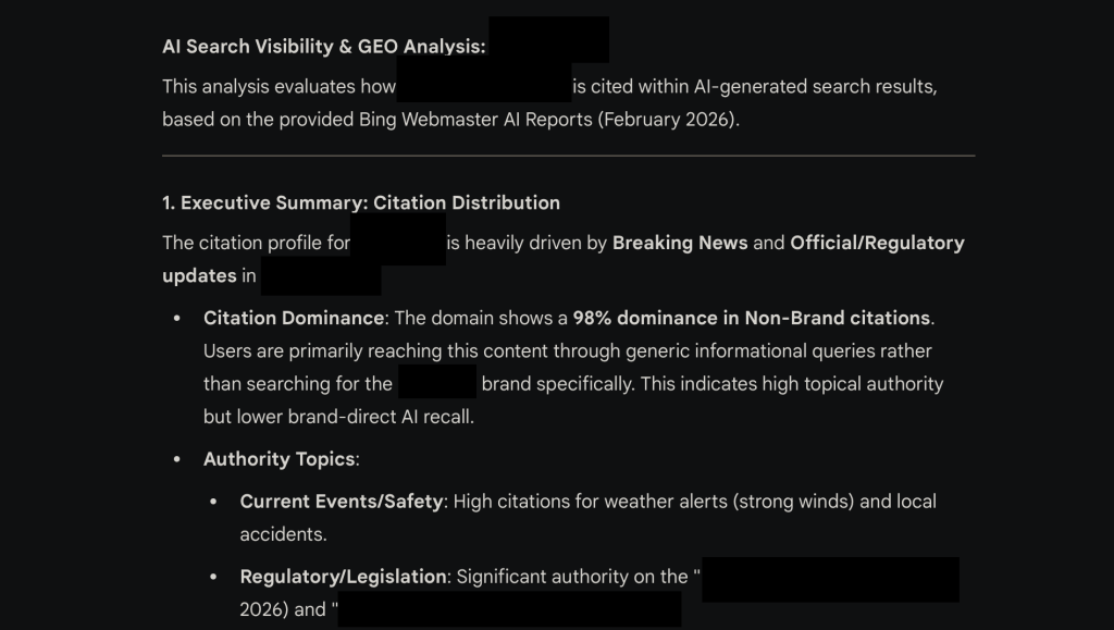 Le 10 février 2026, Microsoft a marqué un tournant majeur pour le SEO/ GEO en lançant le dashboard AI Performance dans Bing Webmaster Tools. Pour la première fois, un moteur de recherche offre des données de source directe sur la manière dont les contenus sont cités par les LLM comme Copilot et ChatGPT.