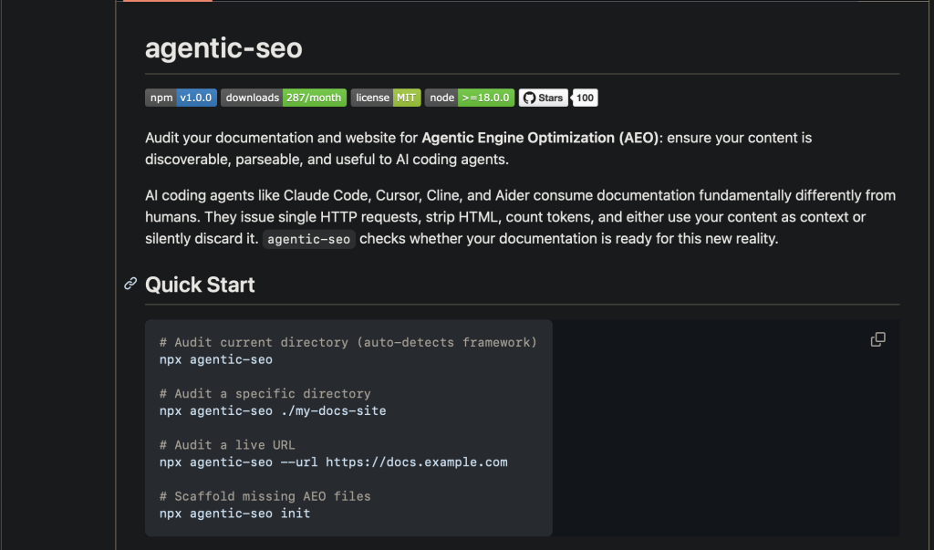 Addy Osmani a proposé un outil Github pour faire un audit / avoir des recommendations pour l’optimisation de vos pages pour les agents IA.