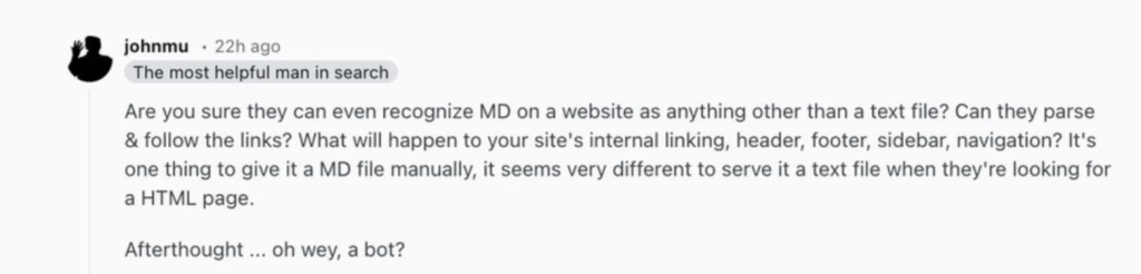 PS : Google a commencé a mettre en place des pages Markdown sur leurs pages. En revanche Jhon Mueller a explique que, comme c’était le cas du LLM.txt mis l’année passée, ce n’est pas forcement une confirmation que le format est efficace.
