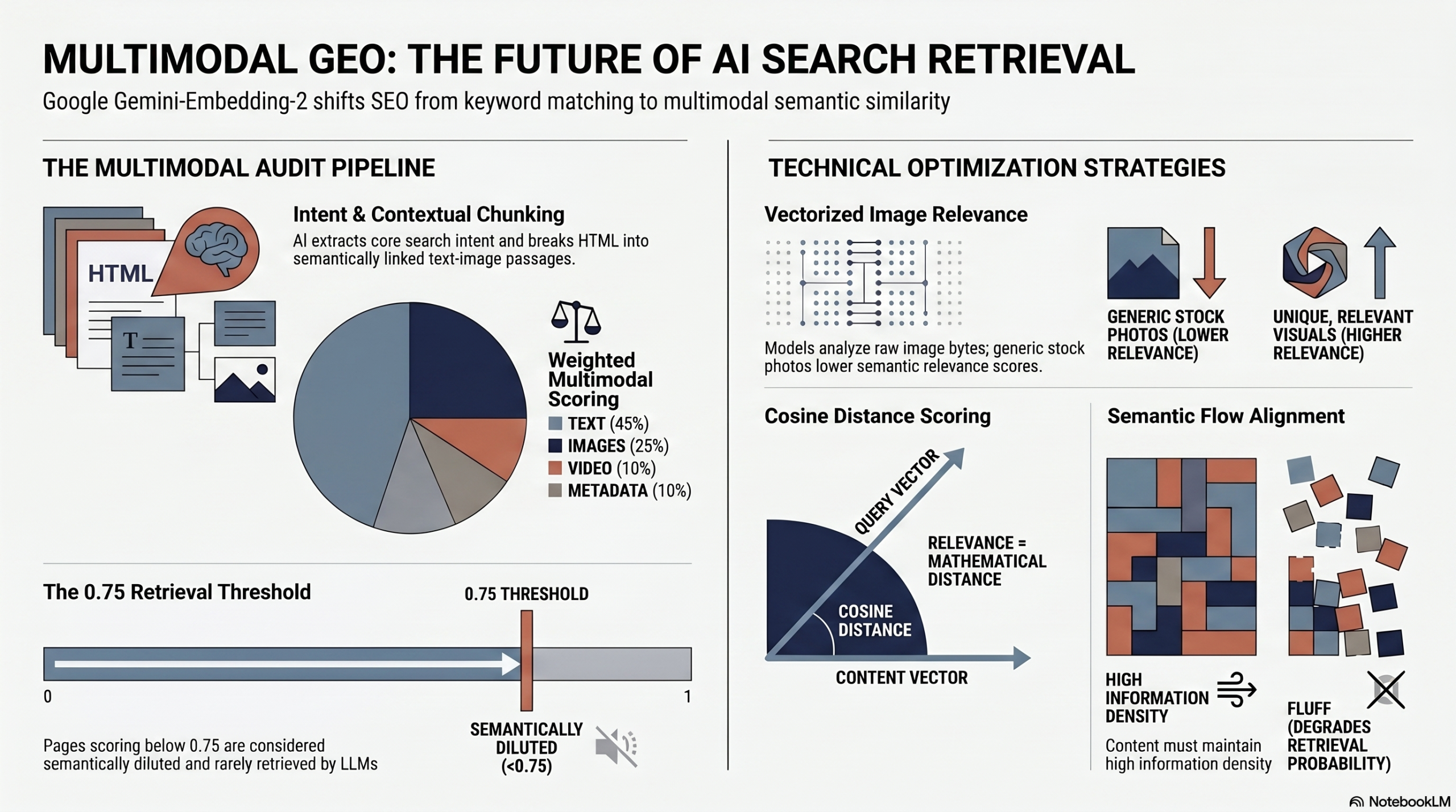 - what You have to understand: This score is a weighted average (HTML 45%, 25% images, etc.) of the cosine similarities of all page elements. To be systematically extracted by a RAG system, the empirical target is at 0.75.