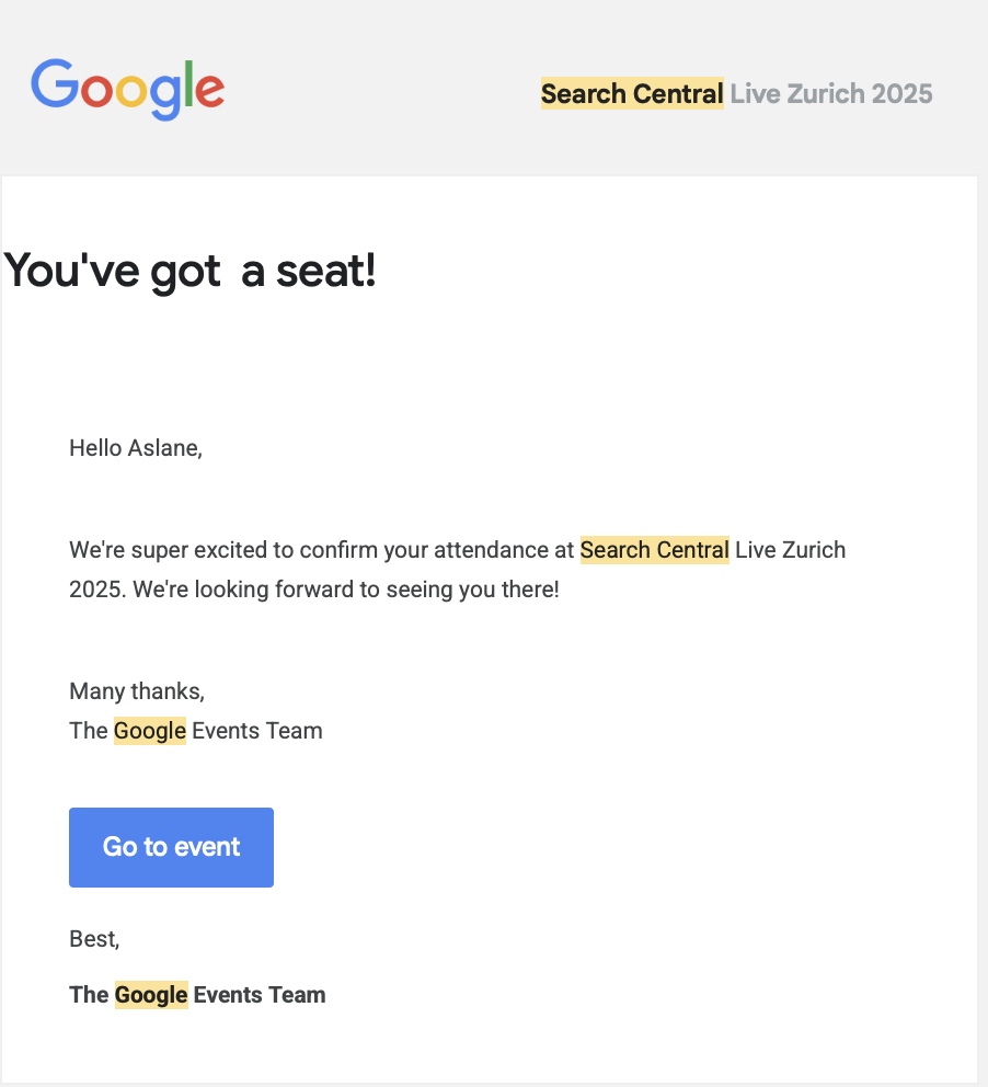 Celui-là venait de Google Search Central : Invitation – Google Search Central Live 2025, Zurich.