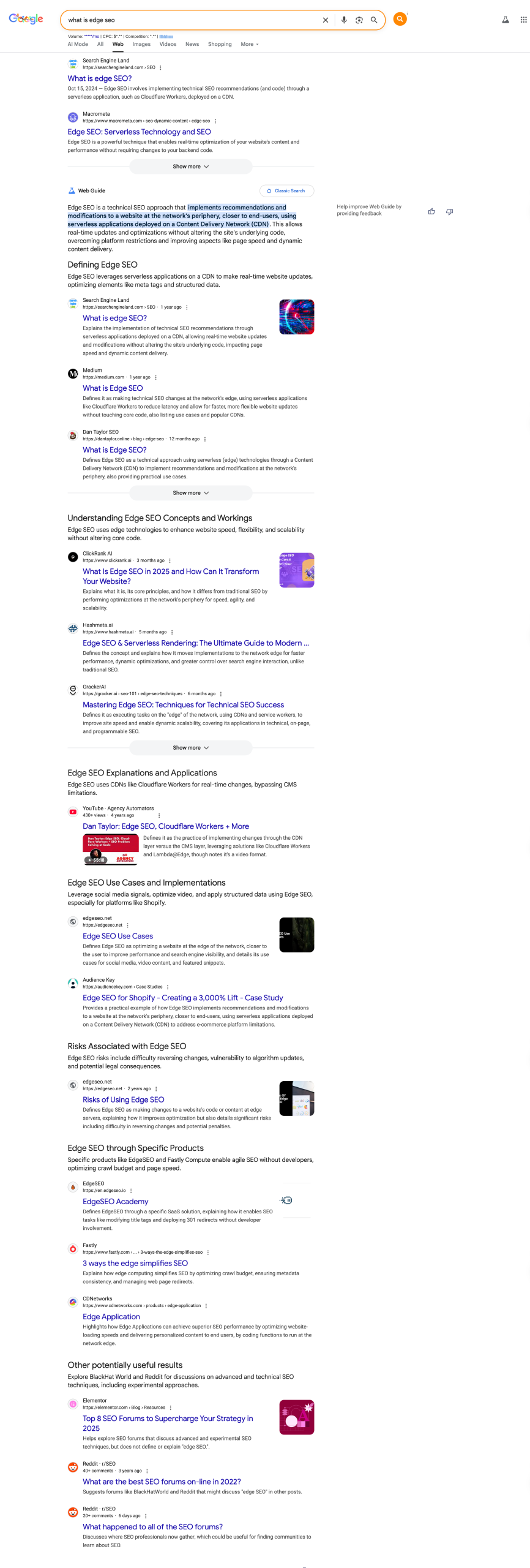 Avec ma requête Edge SEO, j’ai eu droit aux sites classiques type Search Engine Land et toute la panoplie habituelle.